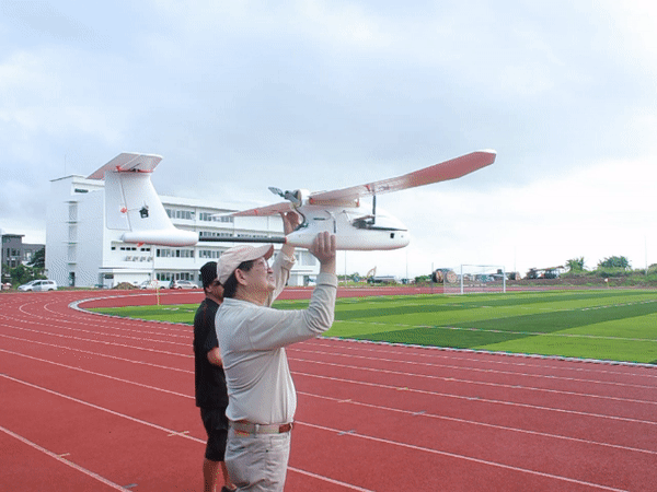 The model of the fixed-wing in this training module is the Skywalker. With this model, there are no landing gears that will allow for a conventional runway takeoff. Hence, the takeoff for this fixed-wing drone is known as the hand throw launch or hand throw takeoff. Hand throw launch is simple however it is perfectly normal to feel uneasy in the first few times. It may require two persons or one trained operator to launch the UAV. As for the takeoff, make sure that the UAV is launched in to the wind or upwind to maximize the lift under the wings, as well as the airflow over the whole UAV. Hold the UAV around head-height and your thumb from the other hand to the throttle. Make sure to level the UAV before throwing and do not point the UAV upwards much. Apply small motor power, take a step forward at the same time giving the UAV a firm push off your hand while simultaneously increasing the throttle around three-fourths or maximum power. It is important to note that the launch should achieve above stalling speed to avoid stalling and crashing. Immediately after the throw, bring back that hand to the transmitters as soon as possible and control the UAV.